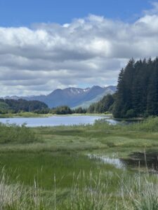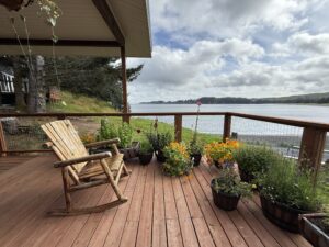 We stay on the waterfront out of town in Chiniak in a lodge building all to ourselves, with 7 rooms, a chef’s kitchen, and wildlife meandering through the property. Our location provides us with wildlife and aurora opportunities away from the crowds of downtown Kodiak.